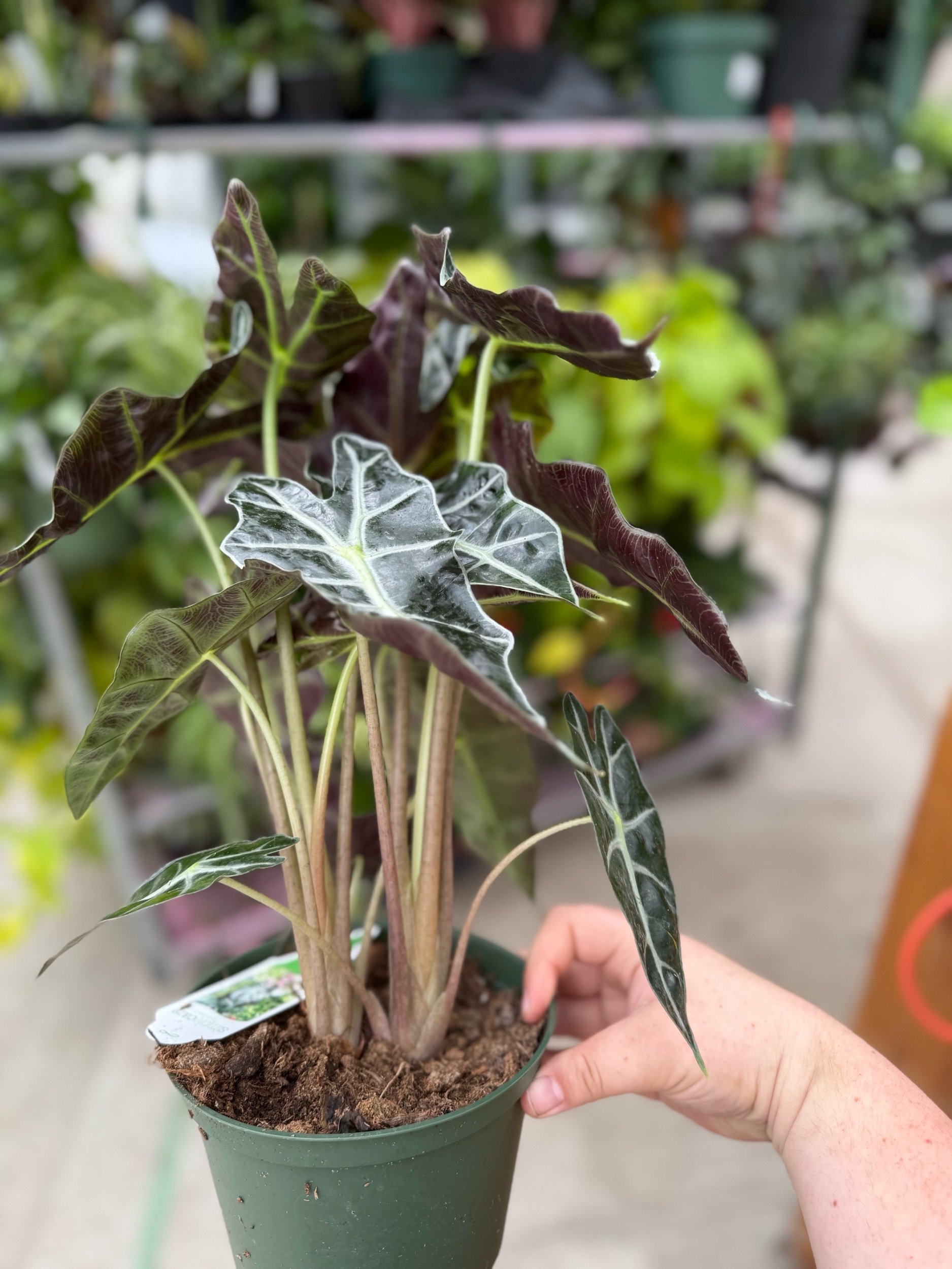 Shop › 6” Alocasia Amazonica Polly Image 1 of 3 Image 2 of 3 Image 3 of 3 6” Alocasia Amazonica Polly $32.99 Quantity: Add To Cart Added!